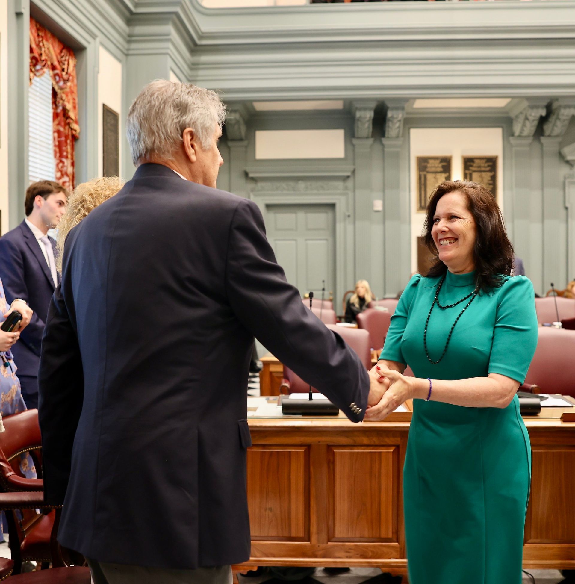 Before her election to the Delaware Senate, Senator Hoffner spent years working and volunteering with civic and advocacy organizations across the state. She was active in advocacy and civic education efforts with the League of Women Voters and served as Co-Chair of the People Powered Fair Maps Redistricting Team. During Delaware’s 2020 redistricting process, she partnered with 19 organizations to promote fair district maps and led more than 100 public workshops to educate residents on the redistricting process, protect communities of interest, and ensure transparency and public participation.